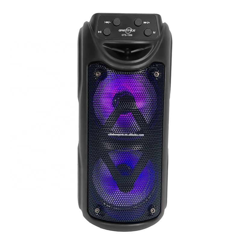 اسپیکر بلوتوثی GTS-1550 با قابلیت پشتیبانی از بلوتوث فلش و مموری میتواند لحظات خوشی برای شما در دورهمی ها و پیک نیک های آخر هفته داشته باشد اینکار با استفاده از آدابتور شارژ و پاور بانک و فندکی ماشین قابل شارژ میباشد.