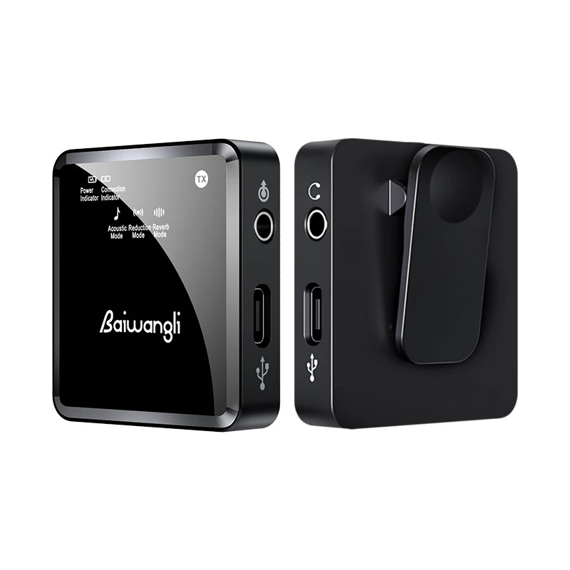 میکروفون بی سیم دو کاناله Baiwangli SX39 یک گزینهی ارزان و کاربردی برای تولید محتوا با گوشی موبایل است. این محصول دارای دو فرستنده و امکان استفادهی همزمان برای دو کاربر است که هریک از آنها میتوانند تا ۱۵ متر دورتر از گیرنده قرار گیرند. به همراه این محصول کابلهای اتصال مستقیم به انواع گوشی اندرویدی و آیفون ارائه شده که مزیت بزرگی برای یک میکروفن بیسیم در این ردهی قیمت محسوب میشود. طراحی این محصول بسیار مدرن و پیروی ترند این روزها یعنی بدنهای مربعیشکل است.هر سهقطعهی اصلی میکروفون بی سیم دو کاناله Baiwangli SX39 دارای گیرهی متصل به بدنه و باتری داخلی با ۱۲ ساعت شارژدهی هستند که از طریق درگاه Type-C روی بدنهی آنها و کابل ارائه شده به همراه محصول شارژ میشوند. از مزایای فنی این محصول میتوان به وجود خروجی هدفون برای مانیتورینگ صدا و امکان کاهش یا فزایش صدای خروجی اشاره کرد. ارتباط بین قطعات فرستنده و گیرنده در این محصول از طریق امواج 2.4GHz صورت میگیرد و تاخیر ارسال صدا ۳۰ میلیثانیه برآورده شده که بسیار ناچیز است. همچنین میکروفنها دارای سه حالت صدابرداری آکوستیک، دارای اکو و بدون نویز هست که خصوصاً حالت بدون نویز یا "نویزکنسلینگ" یکی از حالتهای پرکاربرد برای تولید محتوا در محیطهای شلوغ است.