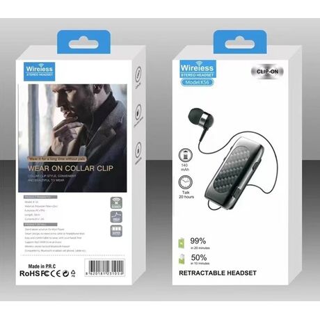 هندزفری تک گوش بلوتوث سیمی clip-on مدل K56